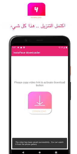 سهل الاستخدام ومجاني ، يمكنك تنزيل الفيديو بخطوة واحدة ، فقط قم بنسخ رابط الفيديو من Instagram أو Facebook ، افتح التطبيق واضغط على زر التنزيل