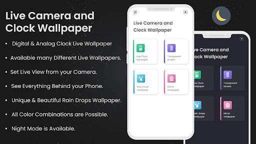 خلفية الساعة الرقمية عبارةشاشات.قبل تطبيق صورة JPG ، يمكنك معاينة الساعة الرقمية LED.خلفية الساعة التناظرية هي نمط تقليدي للساعة التي يمكنك ضبطها على الشاشة الرئيسية وشاشة القفل أيضًا.يمكن للمستخدمين معاينة صورة PNG قبل تطبيقها كخلفيات خلفيات.يوفر لك خلفية الصور خلفية خلفية الحية كميزات قطرات المطر.يمكنك تطبيق خلفية ثلاثية الأبعاد في خلفيتين مباشرتين مختلفتين لشاشة القفل والشاشة الرئيسية دون أي تغيير ، فقط معاينة خلفية ثلاثية الأبعاد وتطبيقها بسهولة.