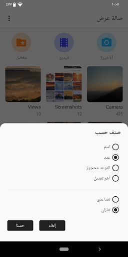 - فرز حسب عدد الملفات والاسم والتاريخ وما إلى ذلك.