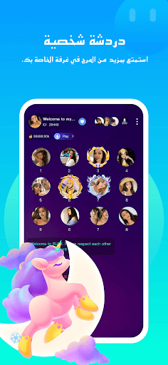 Lamma هي برنامج الدردشة الصوتية التي تحتوي على مختلفة من غرف الدردشة المضحكة التي يمكنك اختيار.يمكنك أن انضم أو إنشاء الغرفة لإظهار نفسك بحرية.فلننظم حفلة صوتية معًا!