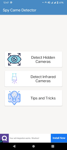 هل تبحث عن تطبيق أو تطبيق كاشف الكاميرا السرية؟ إذا كانت الإجابة بنعم، فأنت في صفحة التطبيق لدينا تطبيق كاميرا مخفية لك. سيسمح لك هذا التطبيق بالكشف عن جميع الكاميرات المخفية من حولك. يحتوي تطبيق كاشف الكاميرا الخفية على حجم تركيب منخفض وواجهة مذهلة وسهلة الاستخدام، لذلك لما تنتظره الآن؟ احصل عليه قم بتنزيل تطبيقنا الجديد الكاميرا الخفية وكاشف الكاميرا السرية الذي يتوفر بحرية في متجر Play، في هذا الكشف عن كاميرا IR المخفية بسهولة بالكشف عن الكاميرا والخفية الميكروفونات. يسمح لمستخدميهم بالكشف عن الكاميرا والخفية الميكروفون فقط باستخدام هاتف Android. كاشف الكاميرا الخفية هو الحل للخصوصية. إنه مجاني للتحميل وهو خيار رائع للكشف عن الكاميرا الخفية. يكشف الأجهزة المخفية بسهولة.