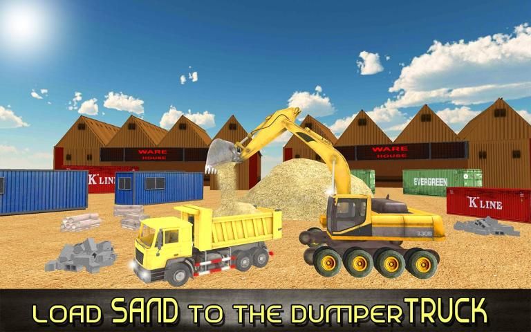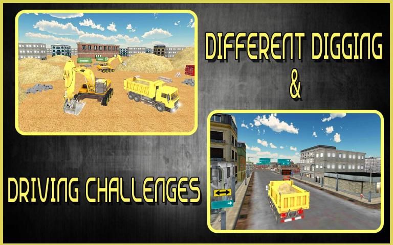 Start your excavator tractor crane and drive your heavy vehicle on the construction site. Excavate the sand from the ground, lift your crane lifter and drop it into the dumper truck. Now get on the steering of the dumper truck with trailer and drive it to the final point. Park it for the construction team to move it further.