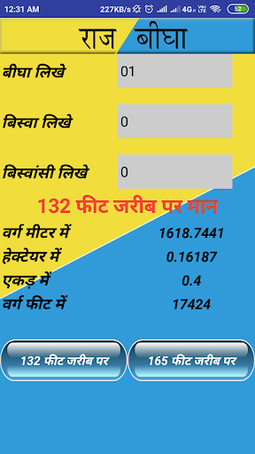 Through the Raj Bigha App, you can convert the prevailing Bigha, Biswa and Biswansi into the state of Rajasthan in square meters, hectares, acres and square feet.