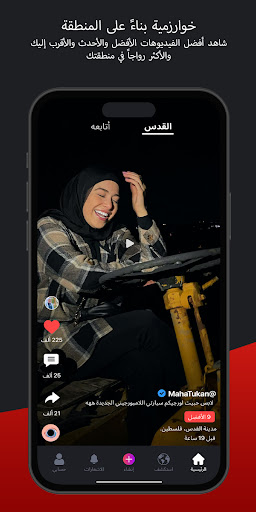 • احصل على تجربة فريدة في عالم تطبيقات التواصل الاجتماعي، نحن نعرض المحتوى بناءً على منطقتك، وليس اهتماماتك الشخصية.