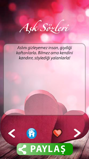 İsterseniz beğendiğiniz sözleri favorilerime ekleyerek isterseniz direkt olarak paylaşabilirsiniz...Uygulamada Reklamları mümkün olduğu kadar az tuttuk. Üst kısımda banner olarak ve kapanışta bir adet reklam bulunuyor. Bize destek olmak isterseniz reklamlara tıklayabilirsiniz.