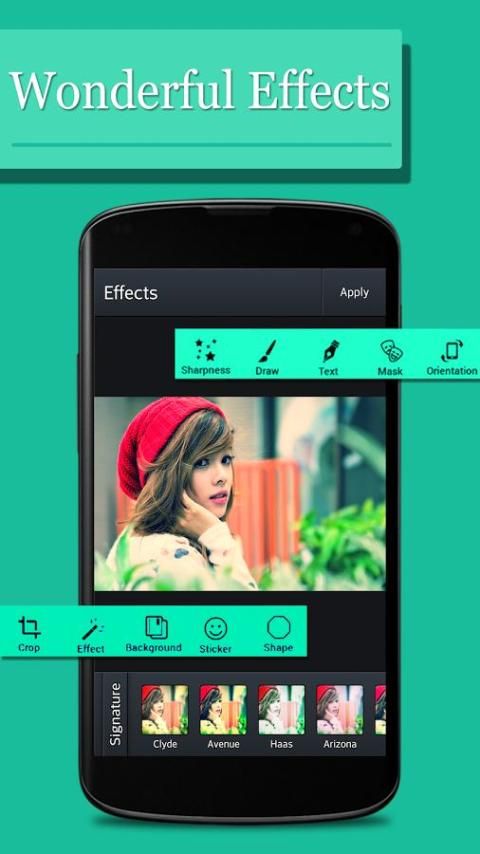 Photo Movie Maker has a very powerful image editor. Using this editor you can do almost anything whatever you want. Add effects, add frame, add stickers , crop, resize, blur image, and many more.