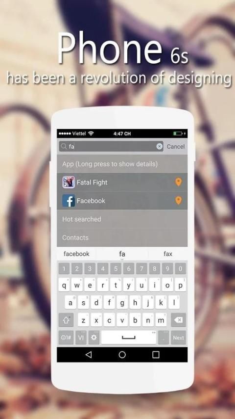 iPhone6s with iOS9 launcher is an excellent launcher app. You can experience the iPhone style of IOS 9. It will make your android phone look more beautiful. With this iOS9 launcher, we transfer the personal layout of your android phone. So you can see your phone with amazing style of iPhone6s launcher layout. Make your friend surprise with the new desktop of your phone look like metro iP style, they will happy to see it.