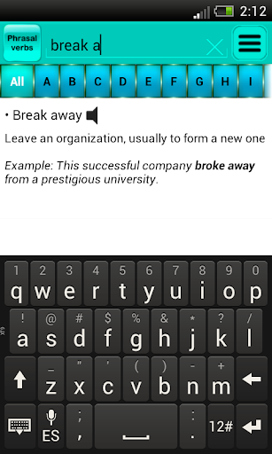 Full list of phrasal verbs. Each verb has its meaning, an example and its pronunciation.