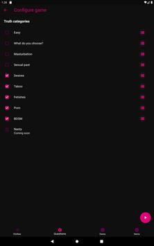 😍Choose between a lot of different truth and dare categories! You can customize your gameplay so that it suits you best! Spice up your foreplay or try something new - all depends on you! 😍