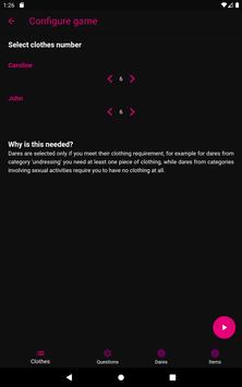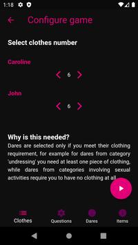 🔥The application will keep track of your clothes, so that it will select the dares accordingly! More spicy activities will come after doing some "easier" dares first 🔥