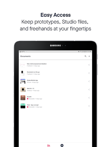 تصميم أثناء التنقل باستخدام تطبيق Invision لنظام Android.