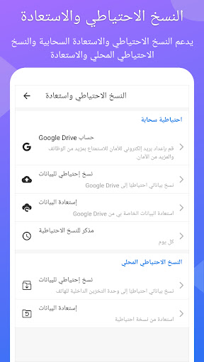 - يدعم النسخ الاحتياطي والاستعادة السحابية والنسخ الاحتياطي المحلي والاستعادة.