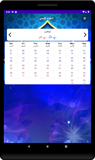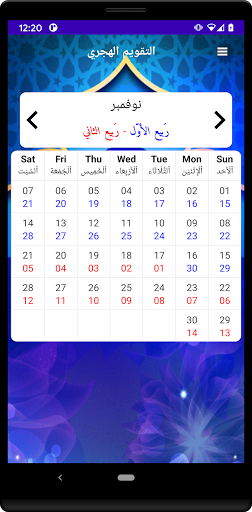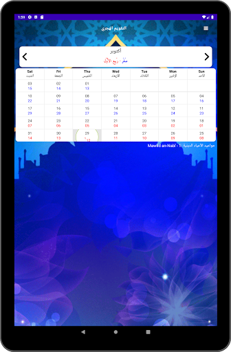 التقويم الإسلامي (التاريخ الهجري) مع الأحداث الإسلامية المختلفة.