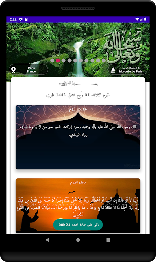 تطبيق دليل المسلم مدعوم بعدة لغات: العربية والإنجليزية والفرنسية.