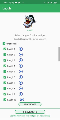 يمكنك اختيار واحد أو أكثر من الأصوات على الحاجيات الخاصة بك وتشغيل الضحك عشوائيا.