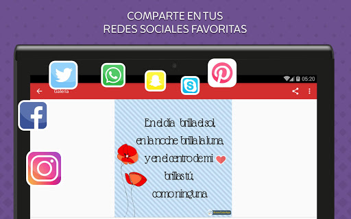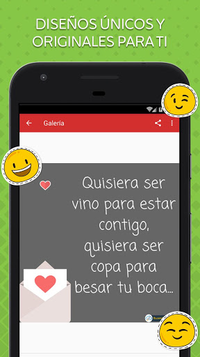 Nuestra app es tu mejor alternativa, para lograr conquistar el amor de esa persona tan importante en tu vida. Te ofrecemos hermosas y originales imágenes, con frases y mensajes cargados de pasión, ternura y amor, con los cuales podrás expresar todo ese sentimiento que alberga tu alma. Disfruta de más de 70 imágenes y compártelas con quieres te rodean sin problema alguna.