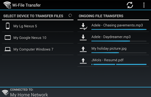 Usage is extremely simple: just launch the app, it automatically detects all your devices, select a device and transfer your files/folders at Wi-Fi speeds.