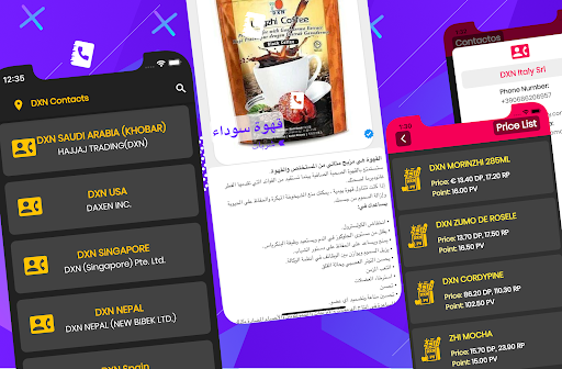 DXN Contacts fixed* تمت إضافة ميزات جديدة ، معلومات منتجات دي إكس إن الجديدة، تمت إضافة تصنيف منتجات DXN ، دي إكس إ