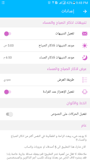4-ضبط الأذكار على مواعيد مناسبه و معينه لكل الاشخاص وطرق عرض تتناسب مع أذواق المستخدمين بدون نت