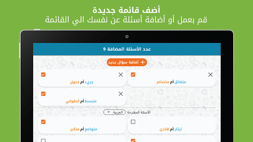 • قم بعمل أو إضافة أسئلة عن نفسك إلى القائمة.