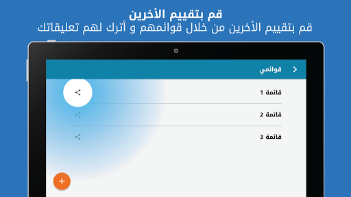 • احصل على تقييماتهم وتعليقاتهم على قائمتك كما يمكنك تقييم الآخرين وإعطاؤهم آرائك من خلال قوائمهم