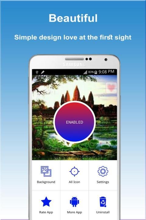 + إذا كنت تستخدم وظيفة قفل الشاشة، فإنه يتطلب تشغيل إدارة الأجهزة لذلك إذا كنت ترغب في إلغاء هذه تاتش المساعدة، يرجى فتح التطبيق والذهاب إلى الإعداد، انقر على زر إلغاء التثبيت.