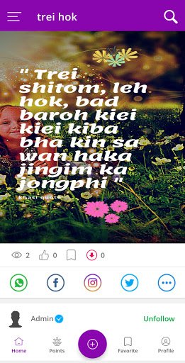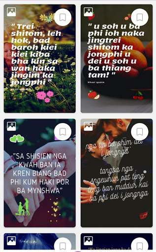 هذا هو تطبيق اقتباسات ومشاركة الحالة في لغة خاسى.يمكن للمستخدمين إنشاء عروض اقتباسات في خاسي.التطبيق سهل الاستخدام ولديه الميزات التالية.