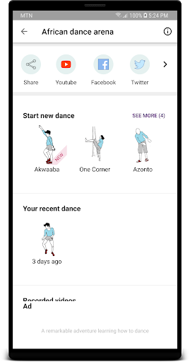 3. Choose your preferred dance (Adowa, Shakushaku, Akwaaba, One Corner or Azonto)
