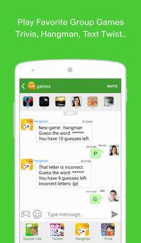 Play popular casual group games against and with other players: Trivia, Hangman, Sound's Like, Text Twist.