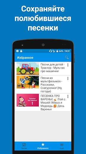 في هذا التطبيق، جمعنا فيديو بأغاني كرتونية للأطفال حتى لا يستطيع الطفل الاستماع فقط، ولكن أيضا مشاهدة الفيديو أيضا أغانيه المفضلة.