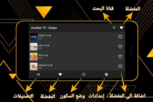 تطبيقنا له استخدام ممتع بواجهته الرائعة ومميزاته ، وهناك قنوات كردية مجانية ومحطات إذاعية كردية.