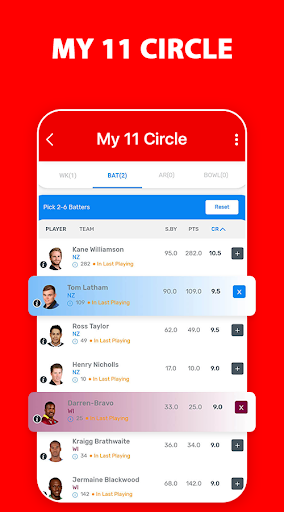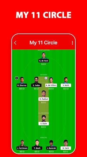 My11Circle Teams التنبؤ.يساعد My11App لدينا في إنشاء أفضل فريق Dream11 الخاص بك على منصاتها مع الإحصاءات المناسبة والأداء السابق للاعبين والإحصاءات البرية.لا تقم فقط بحلم فريق الكريكيت، والتحقق أيضا من أدائها السابق والتفاصيل التي تحصل عليها في تطبيقنا 11.