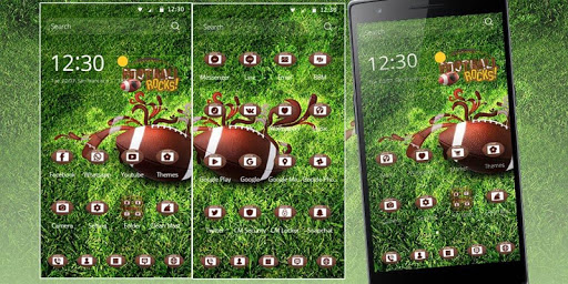 This is American football theme ( rugby theme ) for football fans to kick off . American football theme has football live wallpaper and football lock screen theme on green grass land.