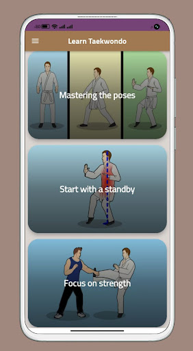 Taekwondo هو فنون القتال الكورية والرياضة القتالية ، مفيدة للغاية للدفاع عن النفس والعناية بالصحة أثناء ممارسة الرياضة.يمكنك القيام بذلك الآن ، تحتاج فقط إلى اتصال بالإنترنت على جهازك ويمكنك أن تصبح خبيرًا.تعلم خطوة بخطوة ،