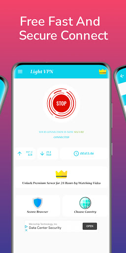 Light VPN هو أسرع VPN والمستعرض للغاية. إنها تساعدك على حماية الخصوصية عبر الإنترنت وتأمين نقطة اتصال واي فاي آمنة، والوصول إلى مواقع الويب المحظورة والتطبيقات ومشاهدة مقاطع الفيديو (دفق المحتوى / الأفلام / البرامج الرياضية / أي عروض أخرى) وتسريع الألعاب وتجدر جرسات الحماية.