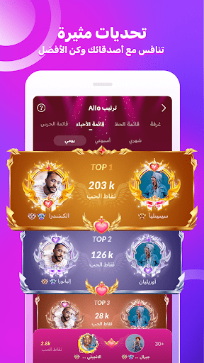 لا توفر Allo منصة للمستخدمين فقط لتكوين صداقات والدردشة ، ولكنها توفر أيضًا ألعابًا ممتعة للغاية ، مثل Ludo و Umo و Domino و Fruit Party و Horse Racing و Camel وما إلى ذلك.يمكنك الدردشة مع أصدقائك أثناء ممارسة الألعاب في أي وقت ، في أي مكان ، ستجلب لك Allo تجربة جديدة من السهولة والسرور.> يمكنك الانضمام إلى الأنشطة عند الدردشة واللعب.br> أرسل الهدايا إلى أصدقائك وأتباعك للتعبير عن مشاعرك وتقديرك أثناء الدردشة.