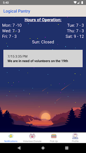 Logical Pantry is a simple app that allows users to donate, pick-up, and volunteer at their local pantry. Currently, the only food pantry that is supported is Royal Divinity in Wylam, Alabama, but there are plans to expand the app to other food pantries around the world.