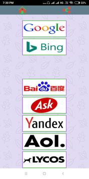 We have made this app to easily browse the different search engines results. 13 best search engines we included in this app are Google, Bing, Yandex, Yahoo, Baidu, AOL, Ask, DuckDuckGo, Wolfram Alpha.