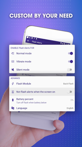 You can choose your incoming call Ringing flashlight mode from several ones and can also choose your incoming sms alert flash mode from several ones.