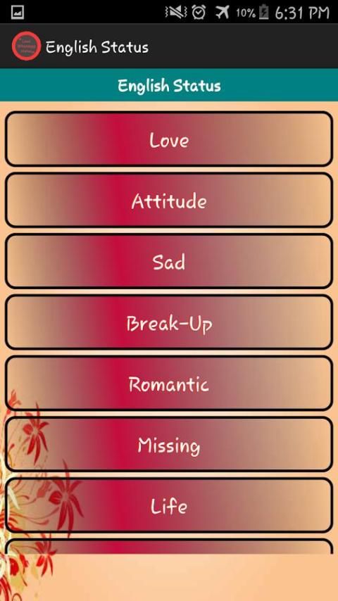 افضل تطبيقات لديها كمية هائلة من التحميل 10,000+ مستحدمين يحملون Love Whatsapp Status احدث الاصدار مجانا كل أسبوع في يتجد ان كثيرا من الناس في استخدام هذا التطبيق..9Apps هذه التطبيق الحلوووه تصدر في 2016-06-07 مؤكدا انك تفحص التطبيق قبل بدء تشغيله..