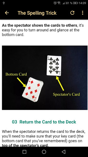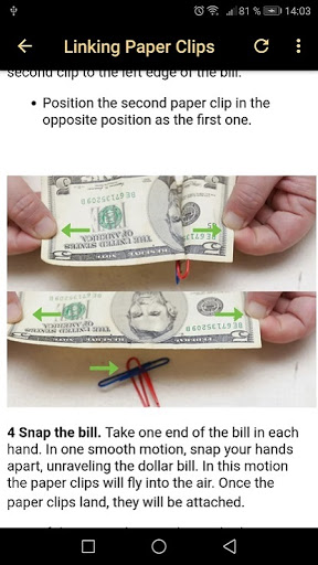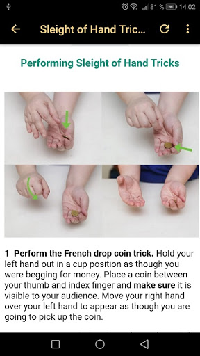 في تطبيقنا ستجد حيل سهلة سهلة يمكنك أداءه مع عملات معدنية أو حيل سحرية مع الأوراق النقدية أو البطاقات المثالية للمبتدئين. فقط اجمع بعض الأوراق النقدية والعملات المعدنية وقراءة تعليمات خطوة بخطوة لممارسة الحيل السحرية وستحصل على بعض الحيل العظيمة لعائلتك وأصدقائك.