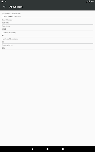 أنه يحتوي على اختبارات الممارسة مع مئات الأسئلة عينة وأكثر من 100 البطاقات التعليمية لمساعدتك في مراجعة سريعة.سواء كنت تختار اختبار معرفتك مع ردود فعل فورية في وضع التدريبات أو لمحاكاة امتحان شهادات حقيقي، الأمر متروك لك.ما يهم أكثر هو أن تصبح فني شبكات متطور الراقية!