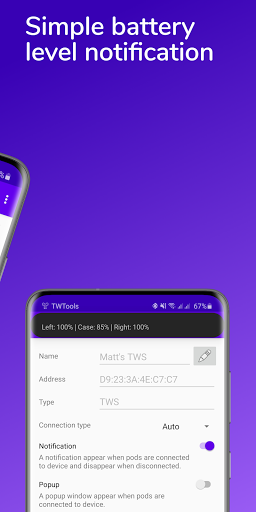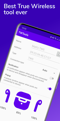 TWTools stands for "True Wireless Tools". It's a simple tool that let you check the correct battery status of i500 TWS pods, original AirPods, AirPods Pro and other clones.