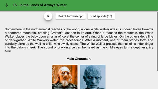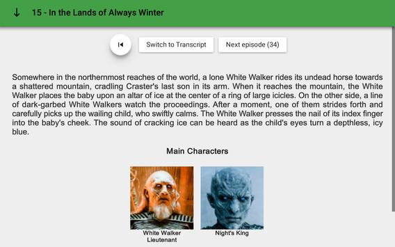 ★ - by selecting an episode from one of the previous seasons you will be able to see the scenes placed on the map. Using the navigation controls you can go through each of the episode's scenes - see the characters, read a scene synopsis or even the full transcript. All aired seasons are included.