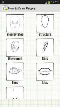 It is easy to draw people! Learn how to draw people through easy steps. You will learn how to draw: - Structure - Faces - Lips - Nose - Eyes - Ears - Movement