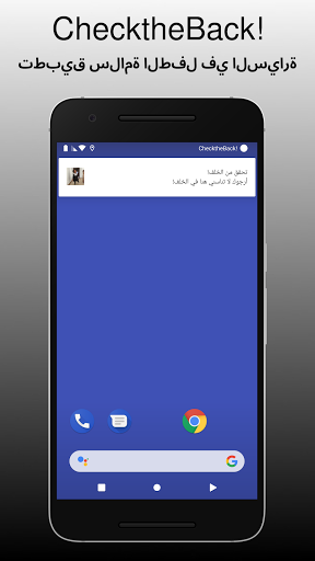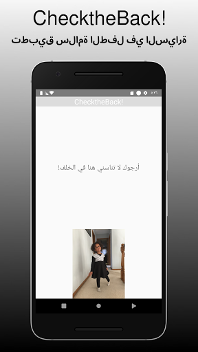 على مدى السنوات القليلة الماضية، كانت هناك العديد من الحوادث المأساوية المتعلقة بالرضع والأطفال الصغار والحيوانات الأليفة التي تُركت عن غير قصد في المقاعد الخلفية للسيارات في درجات حرارة وخيمة. ChecktheBack! هو تطبيق تم تطويره بواسطة MobileDev99 للمساعدة في منع حدوث مثل هذه الحوادث. بعد القيادة، ChecktheBack! يرسل إشعاراً إلى هاتف أندرويد الخاص بك لتذكيرك بفحص المقعد الخلفي لسيارتك. يكون الإشعار مصحوباً بصورة تقوم بتحميلها على التطبيق كوسيلة تحفيز إضافية لتذكيرك بأهمية ما يوجد في المقعد الخلفي. بعد دقيقتين من إرسال الإشعار الأول، ChecktheBack! يرسل إشعاراً آخر، فقط في حال كنت منشغلاً بأشياء متعددة في وقت واحد.