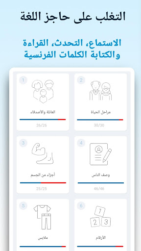 قم بدراسة اللغة الفرنسية في تطبيق اللغة الفرنسية للمبتدئين.