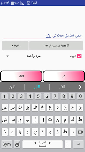 بسهولة اضف تنبيه جديد وسوف يذكرك تطبيق مفكرتي في الموعد الذي حددته