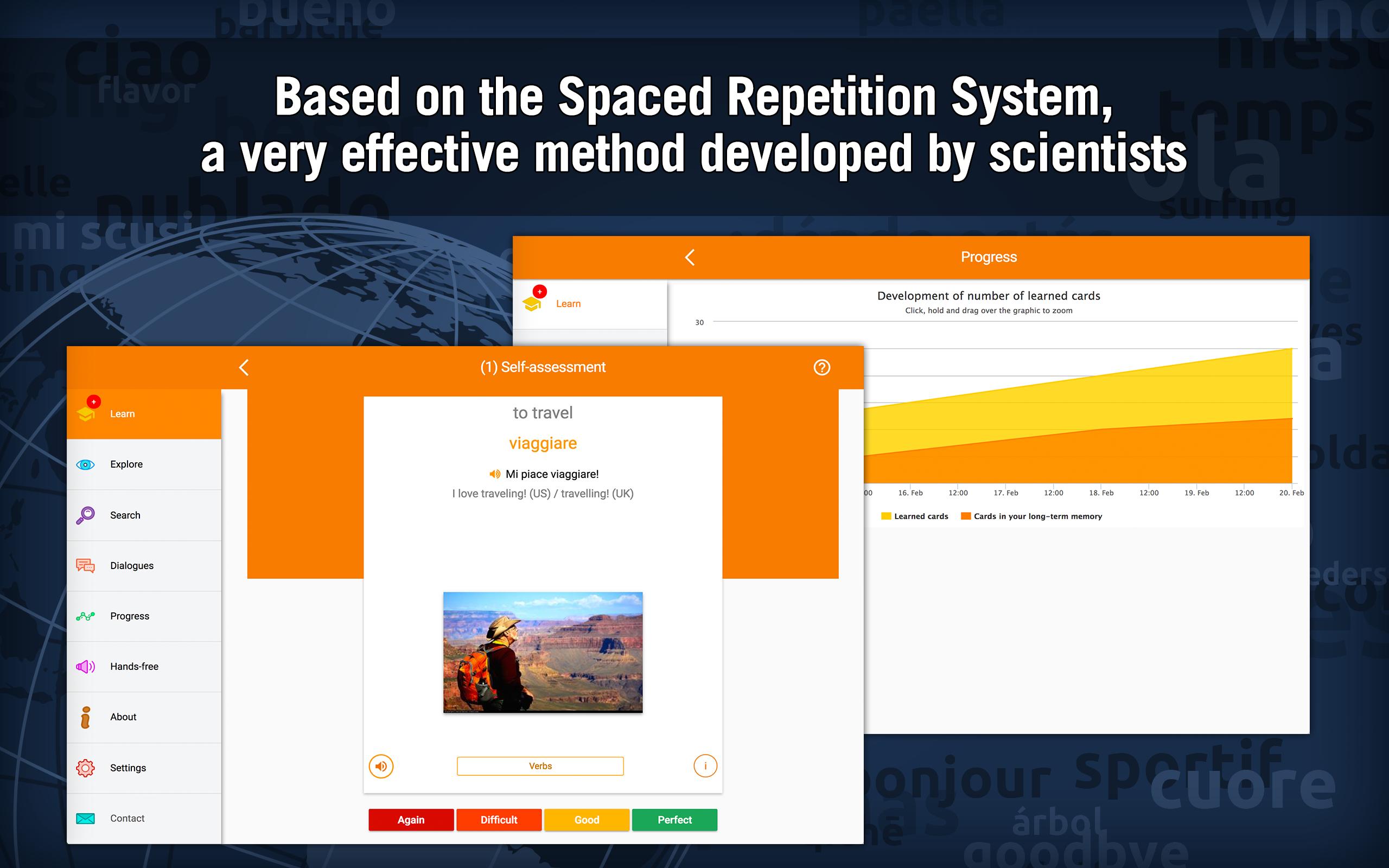 MosaLingua uses the Spaced Repetition System (SRS), the product of several years of scientific research