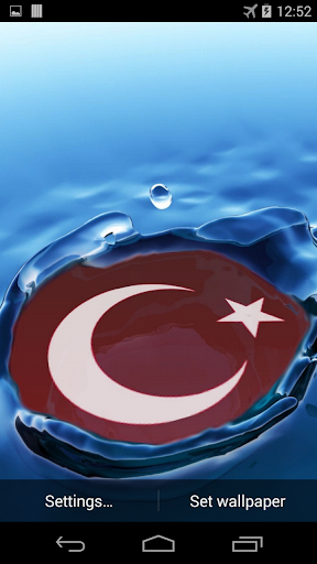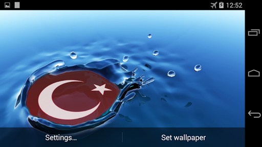 Wonderful interactive 3d live wallpaper with flag of Turkey and water drops effect.